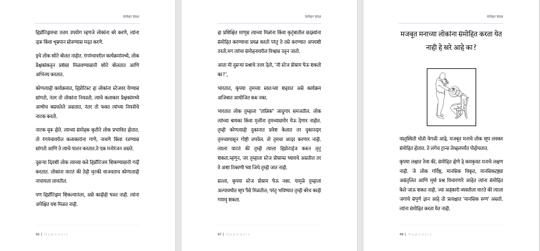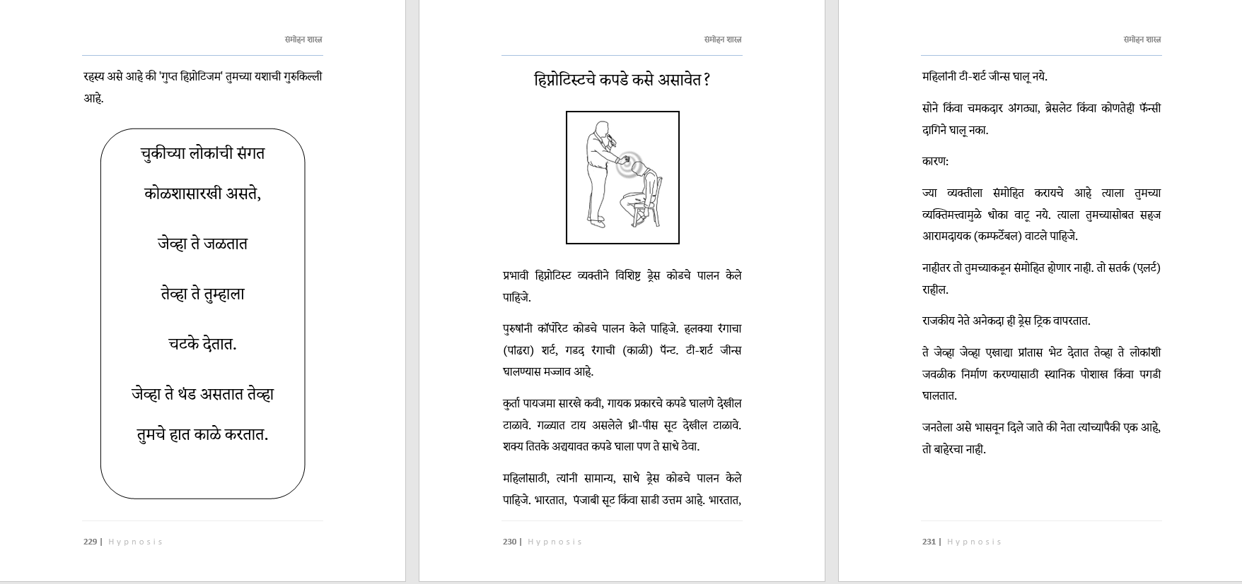 १. "सावधान हे आहे संमोहन शास्त्र” "हिप्नॉटिझम हँडबुक: नवशिक्यांसाठी संपूर्ण अभ्यासक्रम" तुम्हाला प्रॅक्टिकल हिप्नॉटिझमच्या जगात घेऊन जातं. यात अवचेतन मनाची शक्ती वापरण्यासाठी शक्तिशाली तंत्रे सांगीतली आहेत.